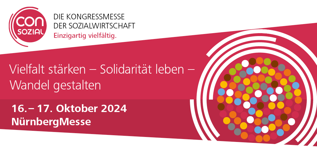 Vielfalt stärken, Solidarität leben, Wandel gestalten - unter diesem Motto steht die diesjährige ConSozial 2024 und spiegelt damit die aktuellen Themen und Herausforderungen der sozialen Gesellschaft wider.