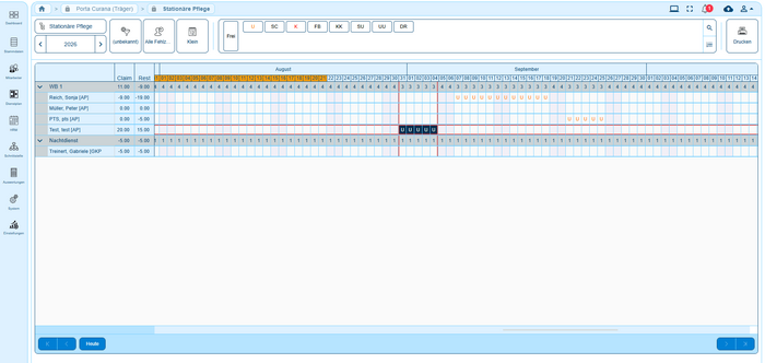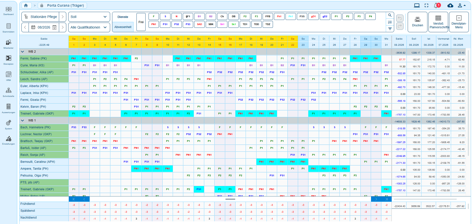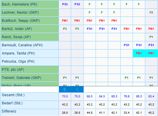 PEX arbeitet monatsbasiert. Es berücksichtigt hierbei die in der Jahresplanung gesetzten Urlaubstage der Mitarbeitenden, aber auch wiederkehrende Dienste auf verschiedenen Stationen, etwa aus 4- wöchigen oder 12- monatigen Rahmenplänen. All diese Vorplanungen können im Modul selbst angelegt werden. Hierfür bietet PEX verschiedenste Ansichten – zum Beispiel für Mehrbereichsplanungen.
