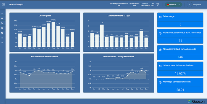 Das PEX- Dashboard ermöglicht unterschiedliche, anpassbare Perspektiven auf dienstplanrelevante Daten und Kennzahlen: