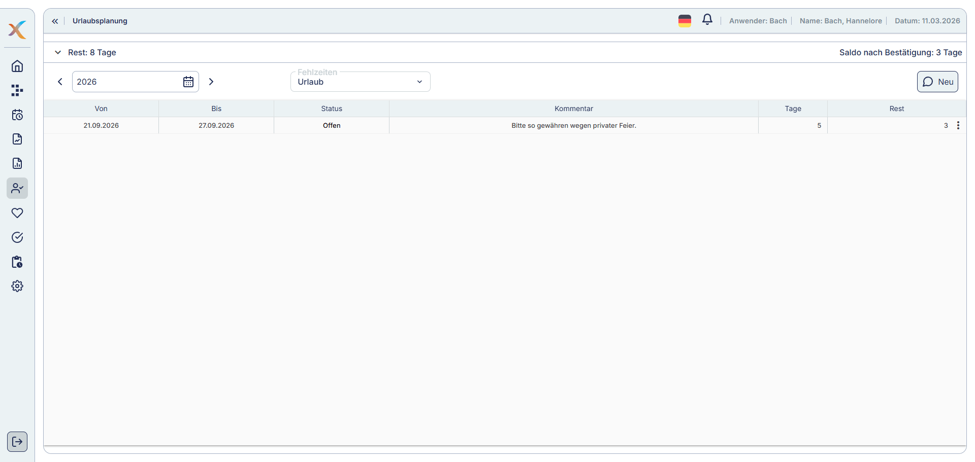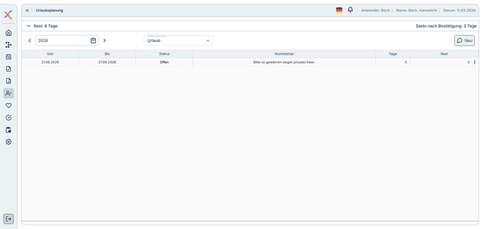 Die App zeigt aktuelle Arbeitszeiten- und Urlaubskontenan. Sie dient dazu als Kommunikationsinstrument für Mitarbeiterwünsche und Dienständerungsanfragen.