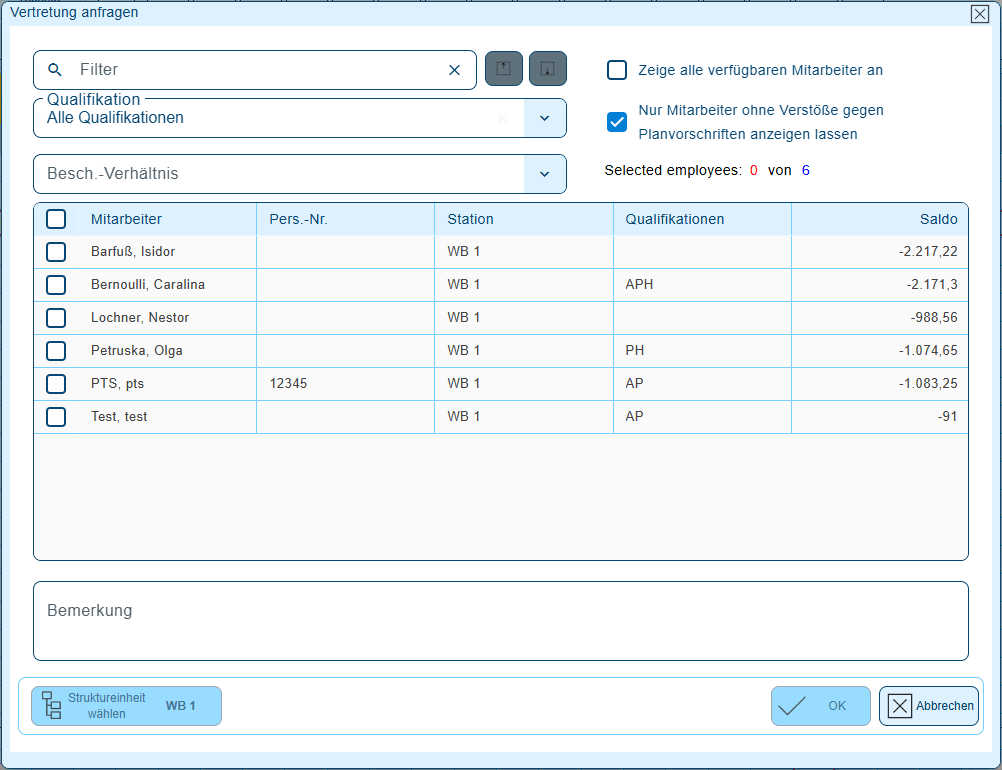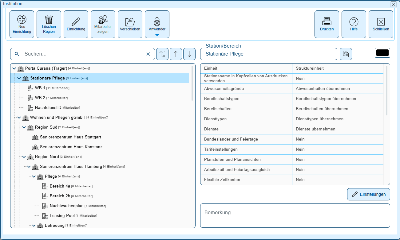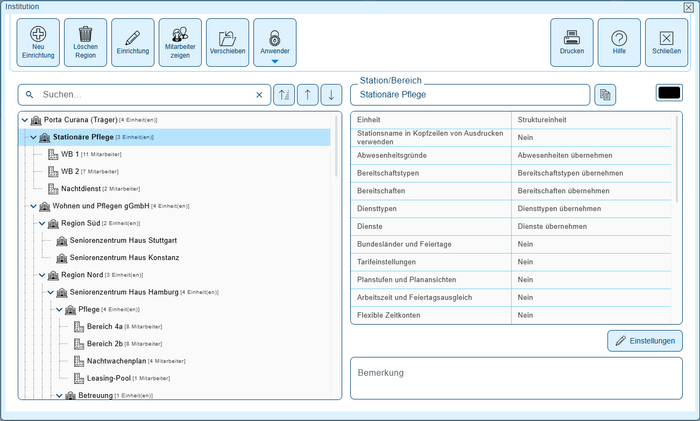 - Einstellungen für die erforderliche Personalbemessung mit tagesaktueller Anzeige