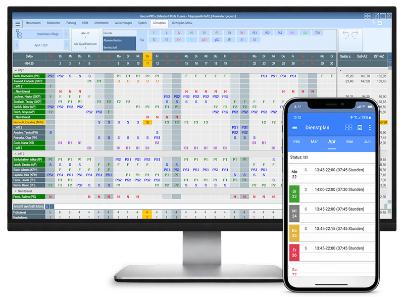 PEX disponiert Fachkräfte per Mausklick. Fachkräfte werden entsprechend ihrer Qualifikationen (QN1-4), ihrer Verfügbarkeiten und ihrer Wünsche eingeplant – automatisiert und exakt steuerbar. Das Desktop- Modul der Pflegedienstleitung und die mobile App für greifen ideal ineinander. Sie bewegen kritische Massen von Menschen. Mit Leichtigkeit.