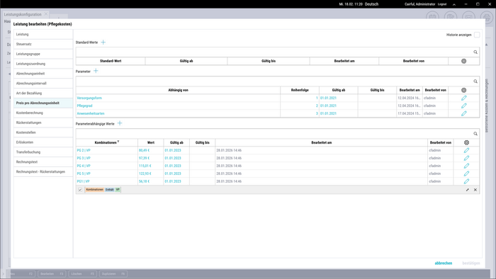 VEX arbeitet ohne Preismatrix. In seiner Abrechnungsregel-Datenbank gibt es immer nur eine Leistungsart: Übergreifend über alle Versorgungsformen, etwa für die Pflegekosten. Das hält den Leistungsstamm minimal und erleichtert die Datenpflege.