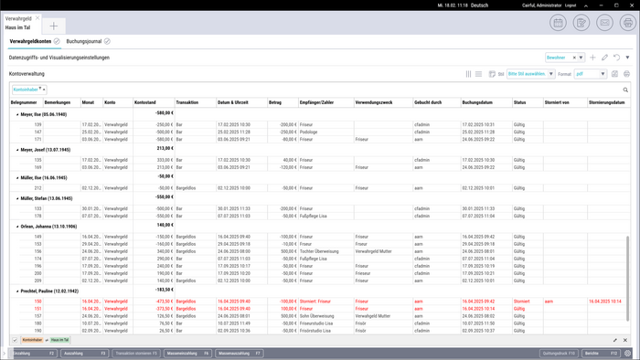 VEX verwaltet nicht nur die regulären Leistungen gegenüber Kostenträgern, sondern auch die persönlichen Verwahrgelder und deren Verwendung für die Bewohner. Das ist praktikabel und schafft zusätzliche Transparenz.