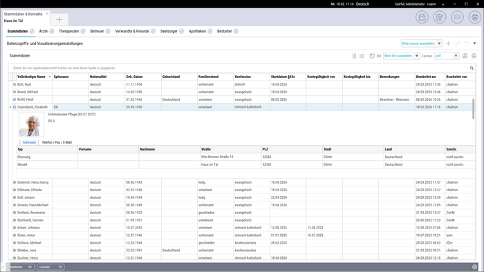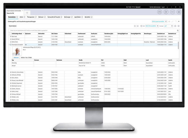 Pflege und Verwaltung müssen jeden Tag Hand in Hand arbeiten. Deshalb teilt sich VEX die Stammdaten mit den anderen Modulen der Cairful-Suite. So, dass alle Akteure nach ihren fachspezifischen Bedürfnissen jederzeit darauf zugreifen können.