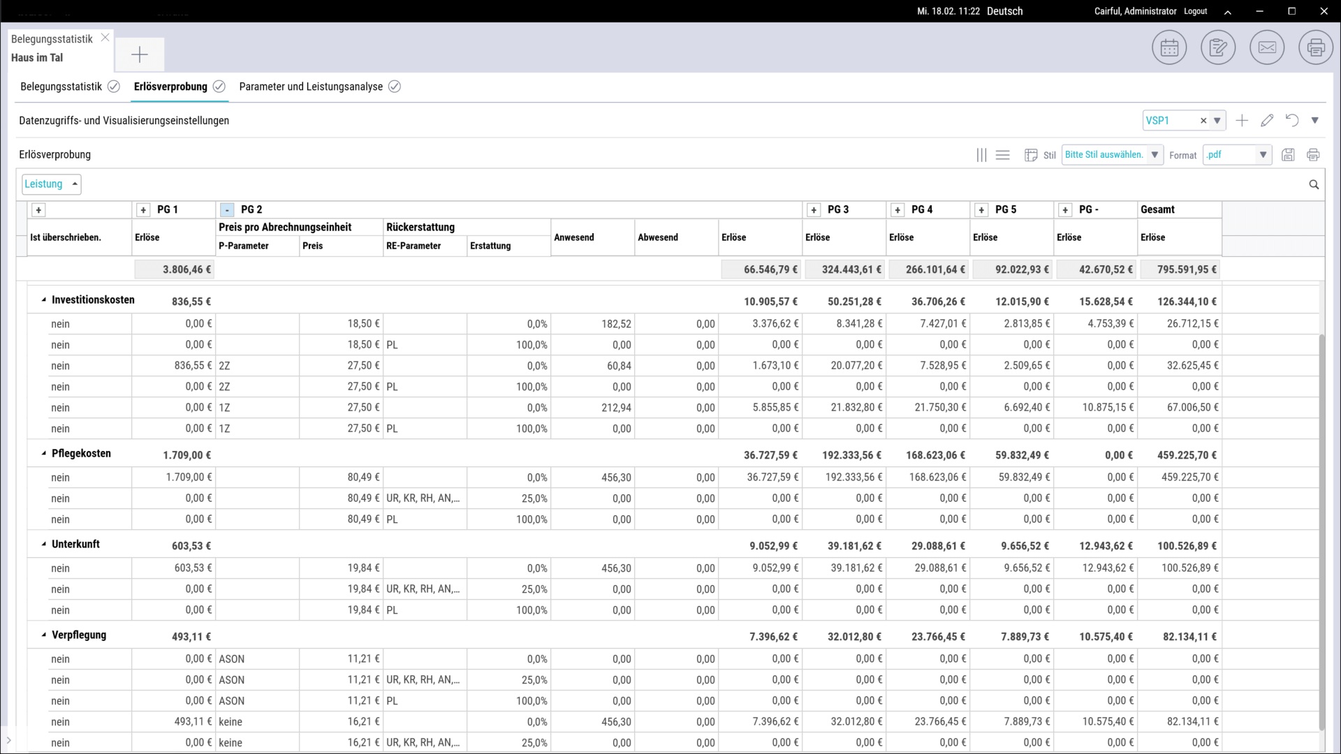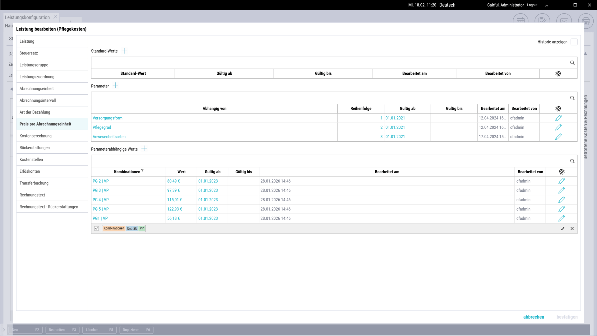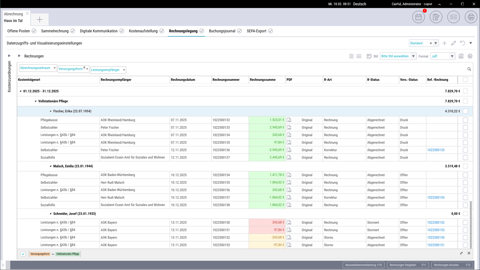 Trägerweite Abrechnungsfunktion für frei definierbare Bewohnergruppen
