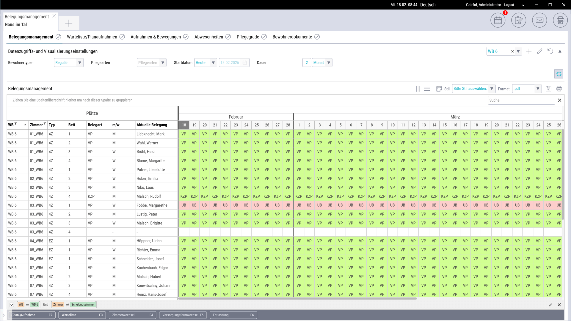 VEX ermöglicht auch trägerweite Zimmerdisposition mit smarten Suchfunktionen zur einfachen Optimierung Ihrer Auslastung. Die integrierte Controlling-Funktion verschafft zusätzlichen Überblick. Umfassendes Management bietet das